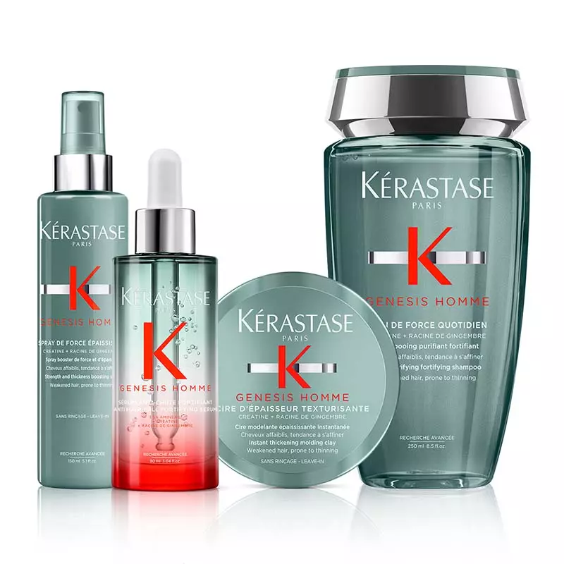 جينيسيس للرجال من كيراستاس هي أوّل عناية بمفعول مزدوج ضد تساقط الشعر: للشعر الضعيف والمعرض للتساقط. تزيد فوراً سماكة الألياف لشعر أكثر امتلاءً وتعمل على معالجة تساقط الشعر على المدى الطويل.
