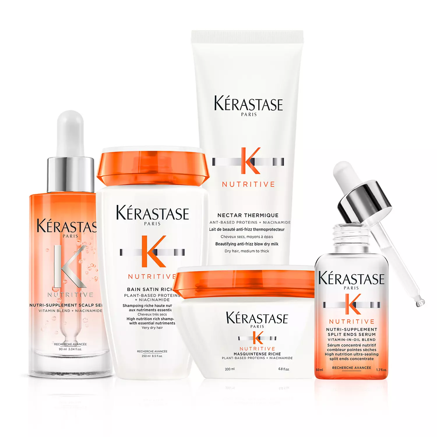 تسعى KÉRASTASE إلى تقديم أفضل الحلول لشعرك، وذلك من خلال تقديم مجموعة من المنتجات التي تعالج جميع مشاكل الشعر. سواء كنتِ تبحثين عن علاج لتساقط الشعر، ترطيب مكثف، أو إعادة بناء الشعر التالف، KÉRASTASE لديها ما تحتاجين.