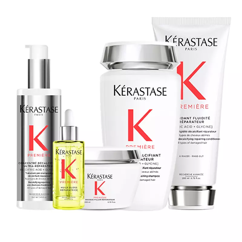 جديد PREMIÉRE يتكون من تركيز قوي من الجليسين وحمض الستريك، فهو يحرر شعركمن تراكم الكالسيوم. وها هو! يعود الشعر إلى حالته الأولى.يستعيد ما يصل إلى 99% من قوة الشعر الأصلية 93% أقل من تساقط الشعرلمعان أكثر بنسبة 75% .
