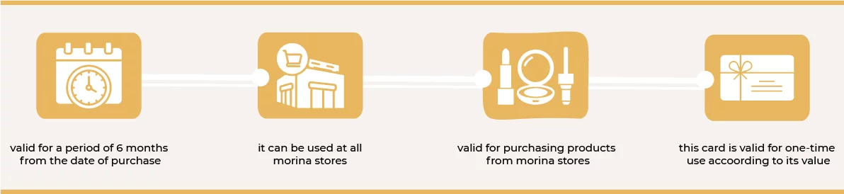 3- The gift card is valid for a one-time use up to its value, and Residual values will not be refunded. In cases where transactions exceed the remaining balance of the gift card, the excess amount must be paid using the different payment methods accepted in the store.